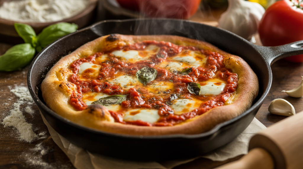 If you’ve been dying to make pizza that tastes like a cross between New York chew, Neapolitan tenderness, and Detroit-style crispiness — but without buying a pizza oven — this is the recipe that finally makes it happen.