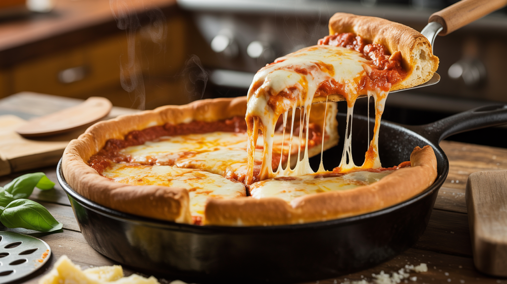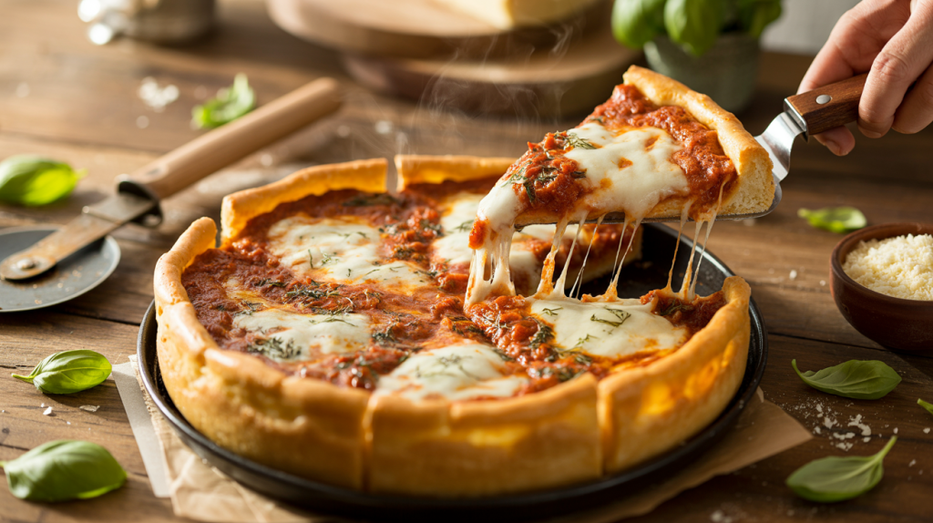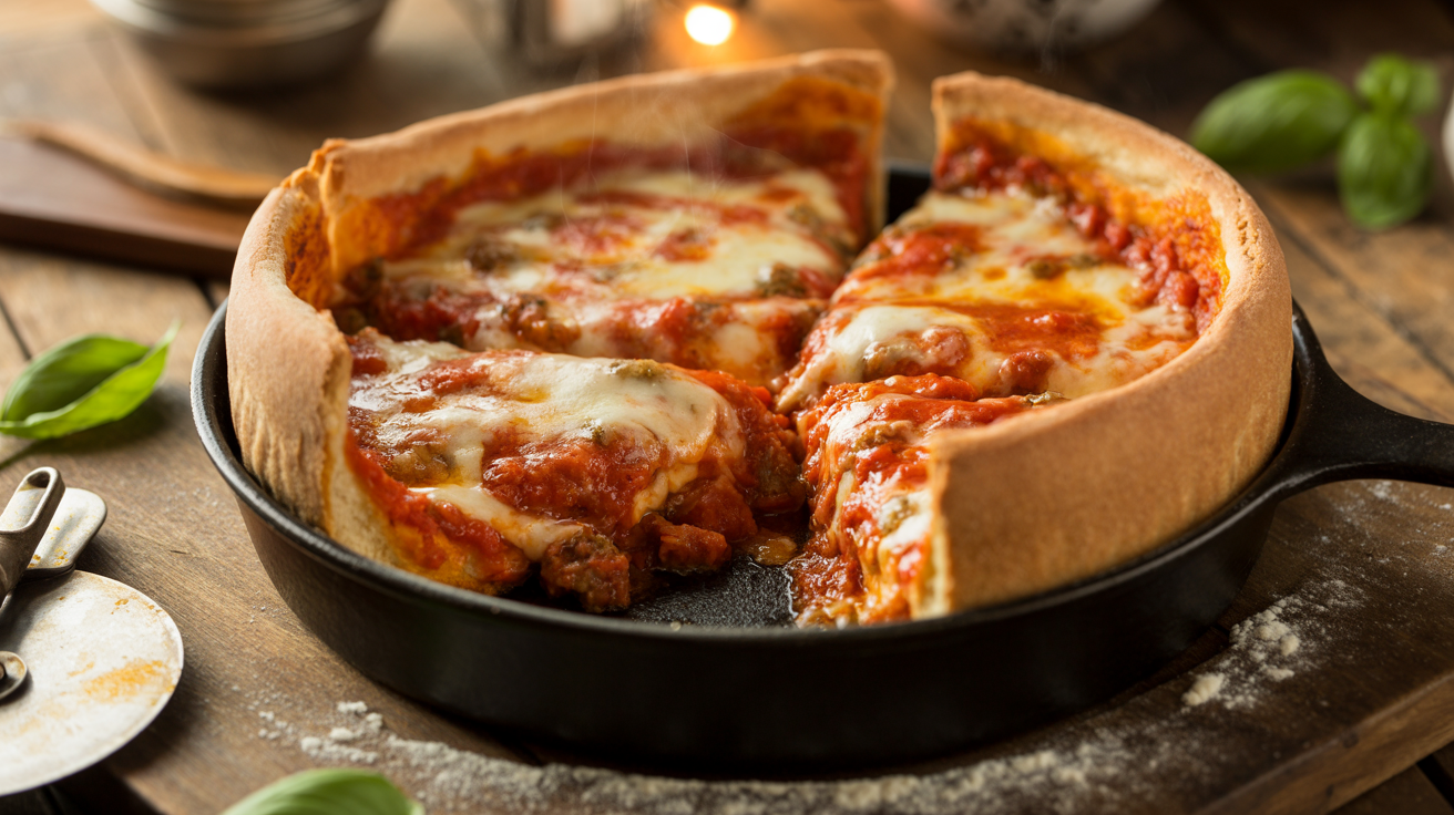 The key to deep dish pizza is layering: crust, then cheese, then toppings, then sauce. This order isn’t random—it’s essential for proper baking and for protecting the cheese from burning.