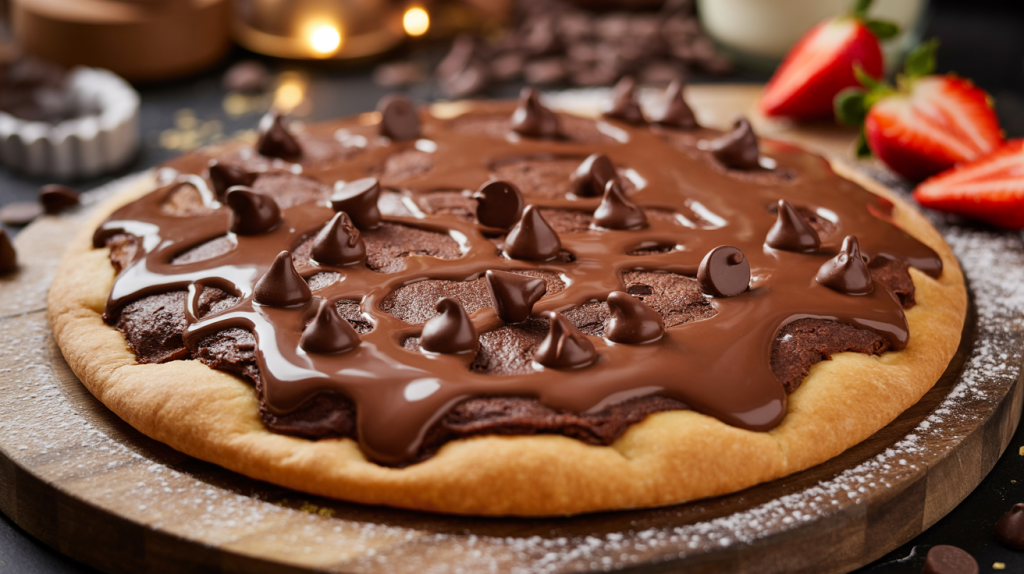 If you like a gooey finish, drizzle heavy cream over the hot pizza. It creates a glossy chocolate swirl that feels downright sinful.