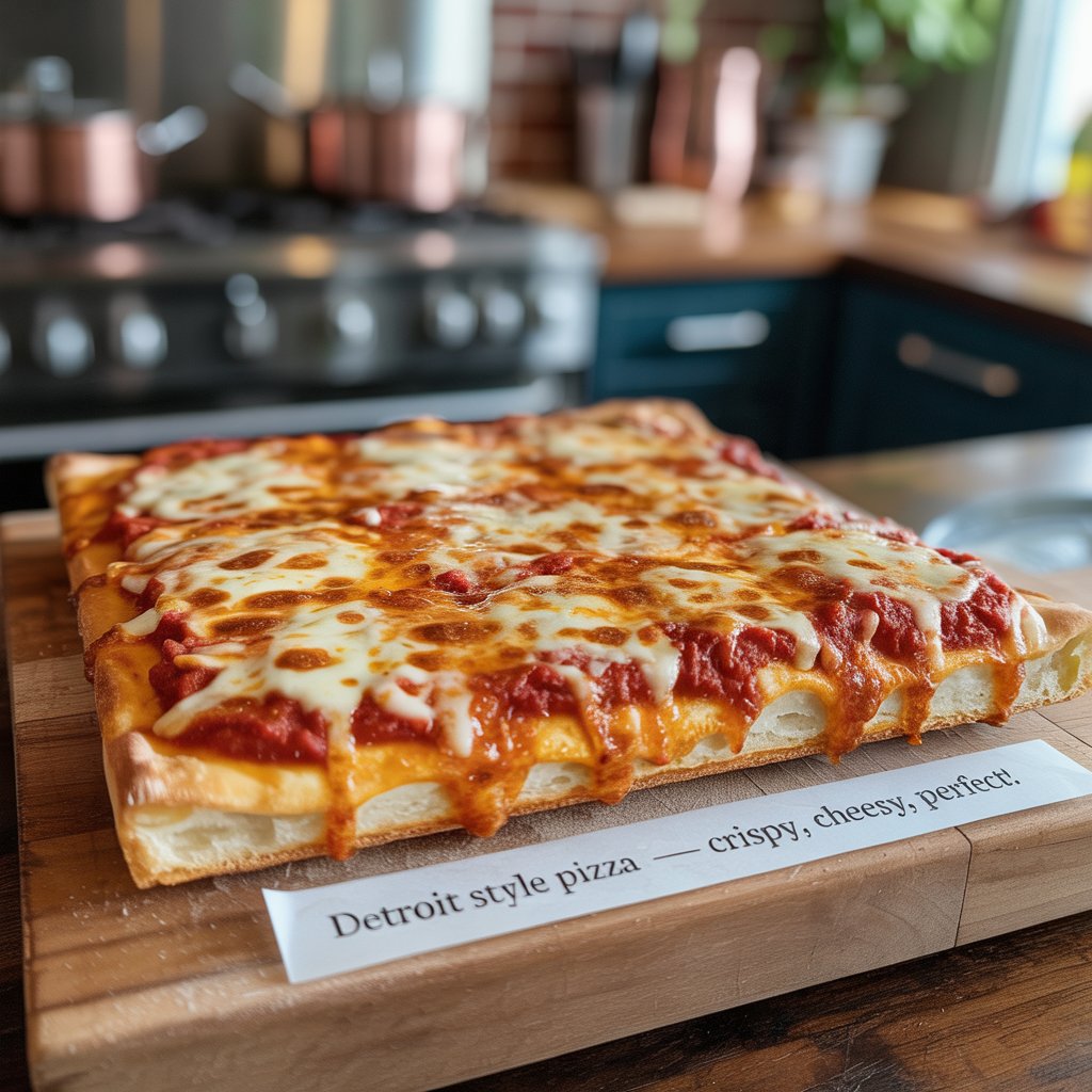 Detroit Style Pizza Recipe – Bold Crust, Cheesy Edges, and Flavor Explosion!