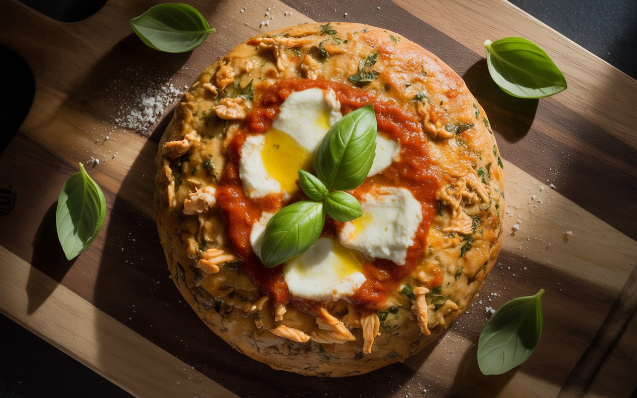 That thin crunch, the molten cheese stretching like it’s auditioning for a mozzarella commercial, the aroma of oregano hitting your nose — it’s heaven. But here’s the twist: this pizza crust isn’t made with flour. It’s made with ground chicken.