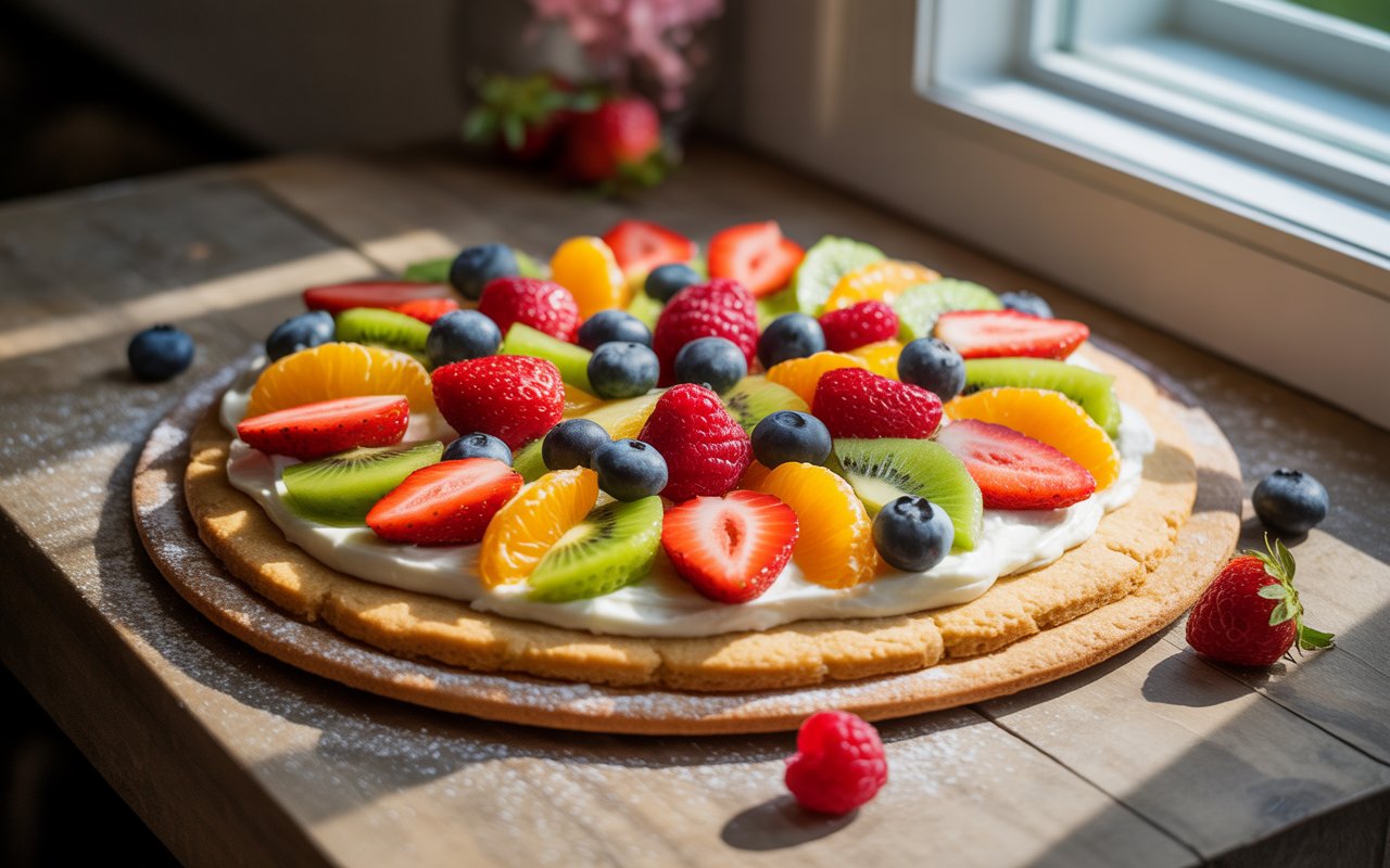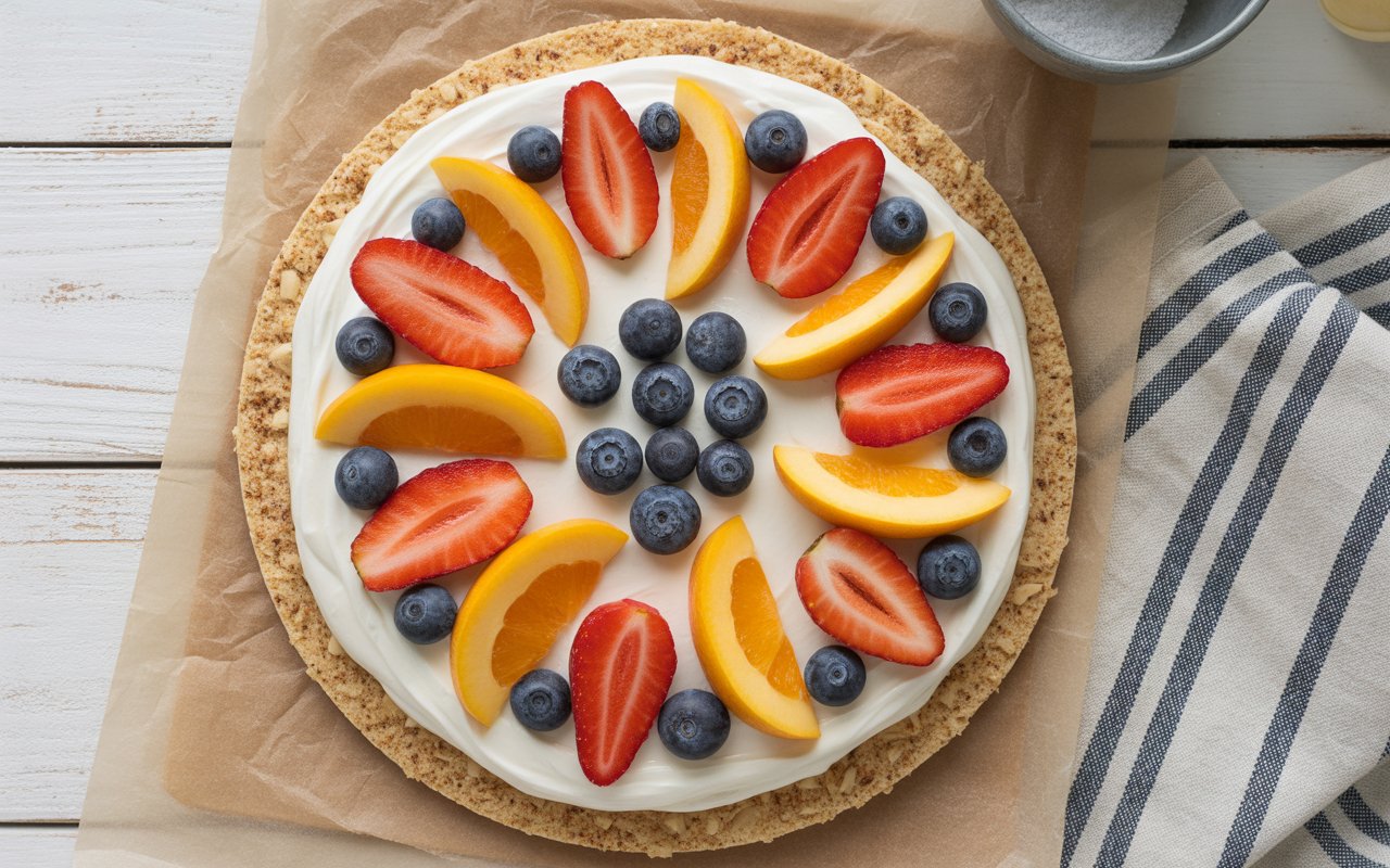 Mascarpone gives this fruit pizza a distinctly Italian soul — smooth, creamy, and slightly tangy, like a grown-up whipped frosting.