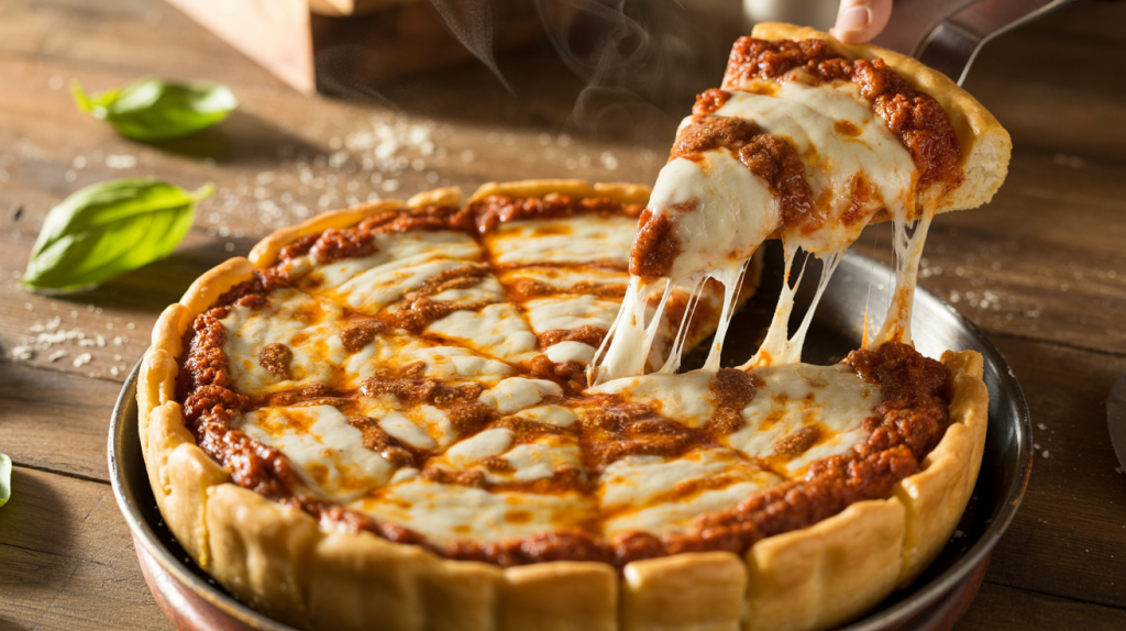 And then there’s Chicago deep dish pizza—the kind of pizza that stops you in your tracks, demands your full attention, and asks you to sit down, pick up a fork, and enjoy the moment.